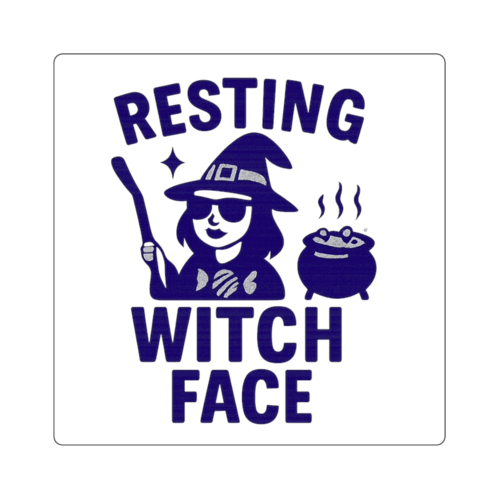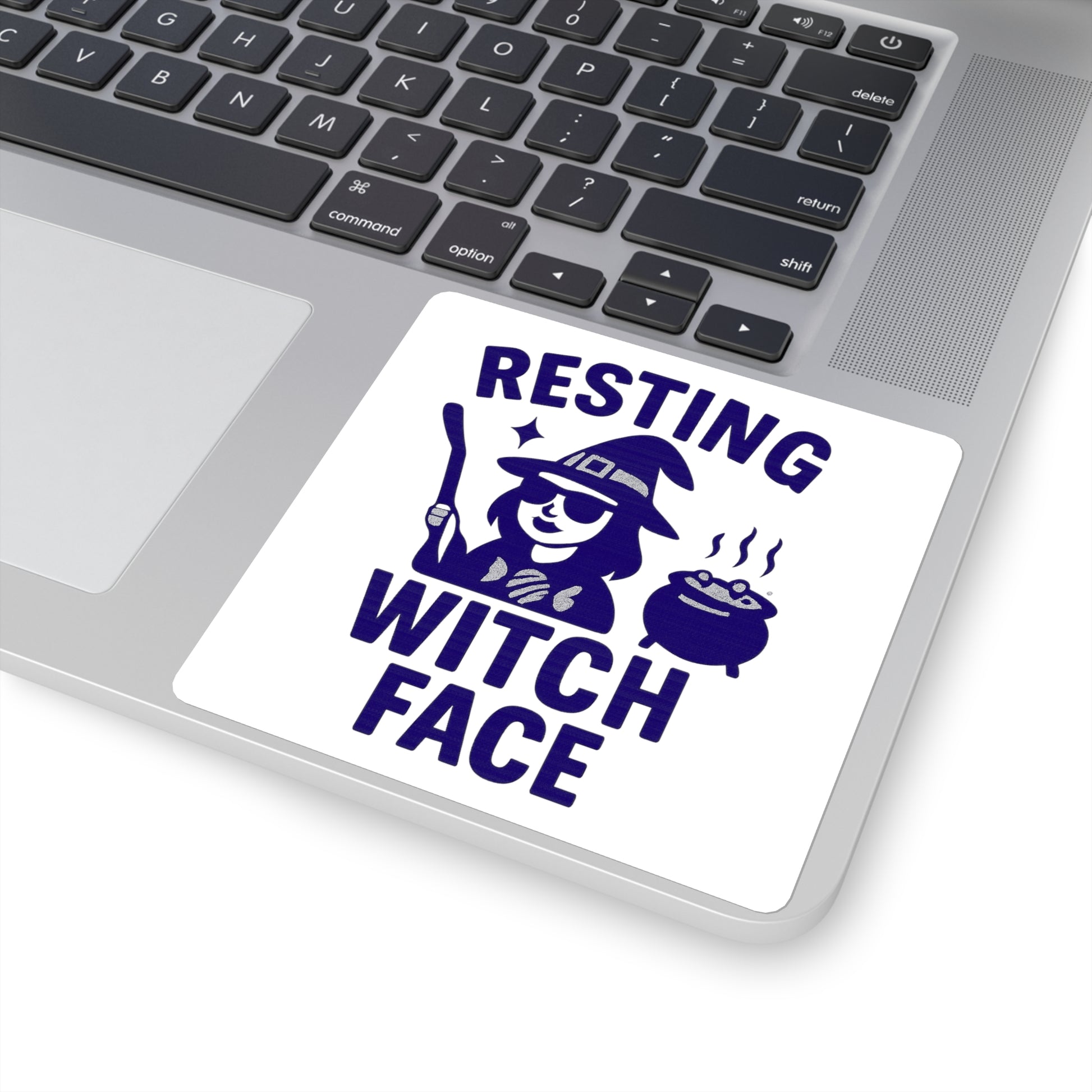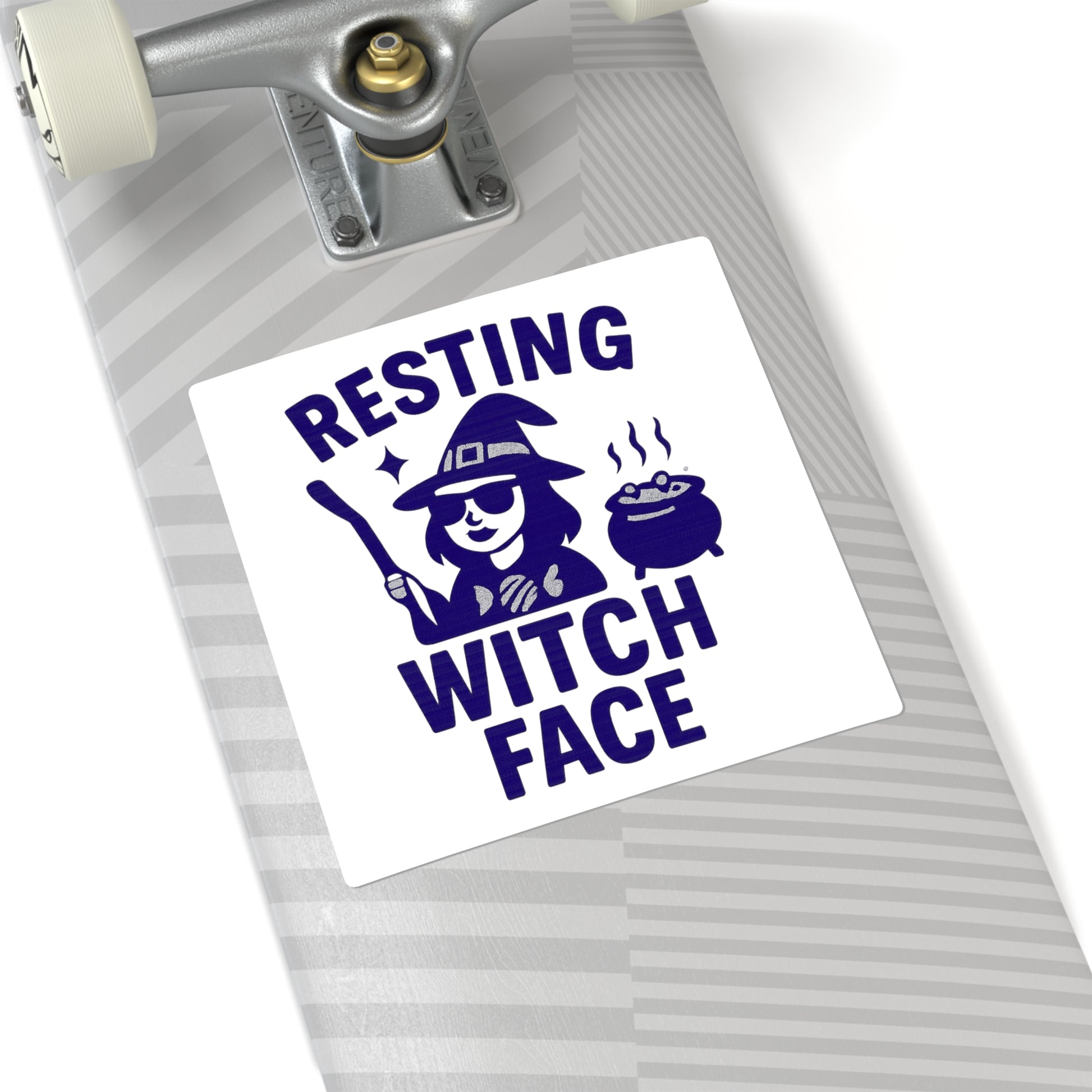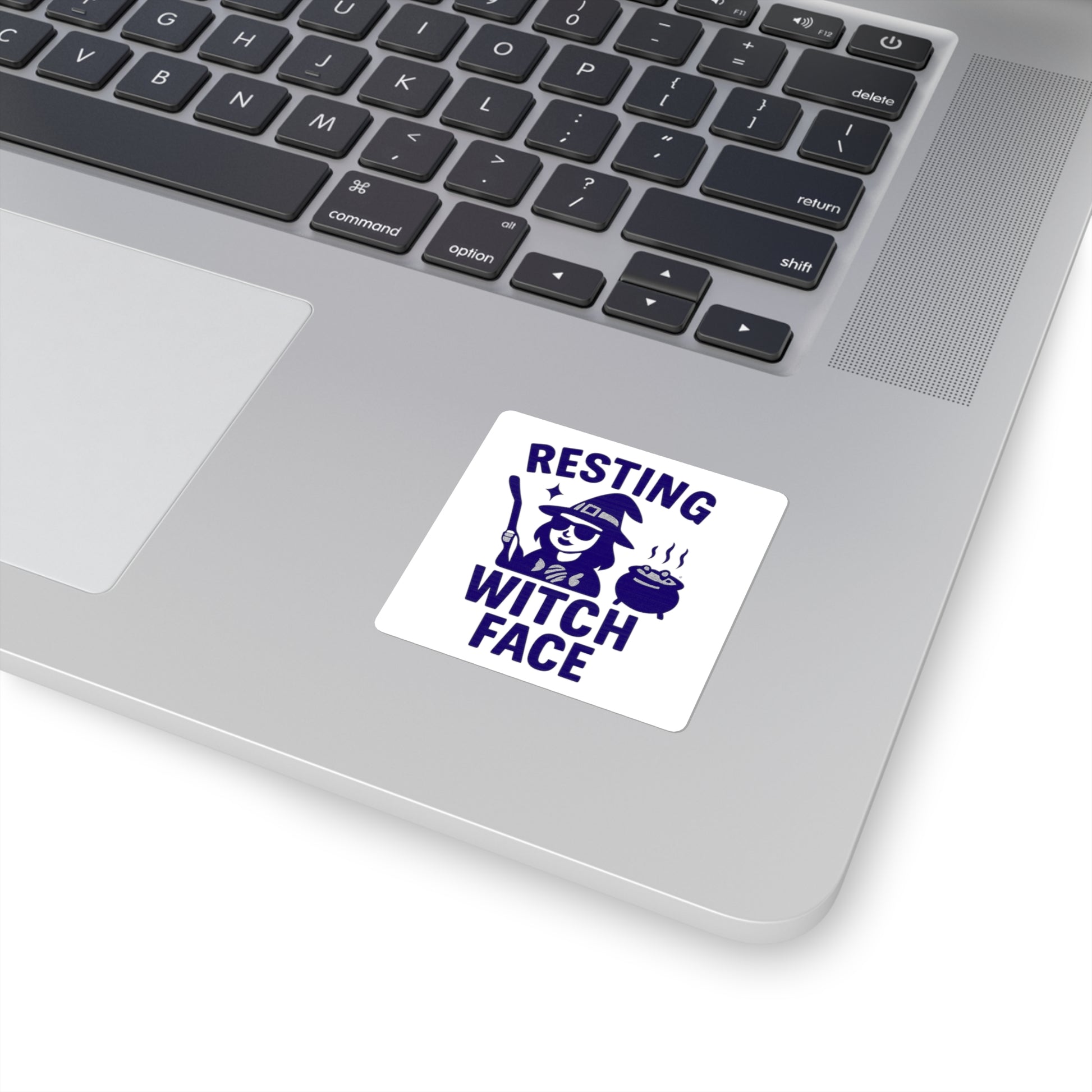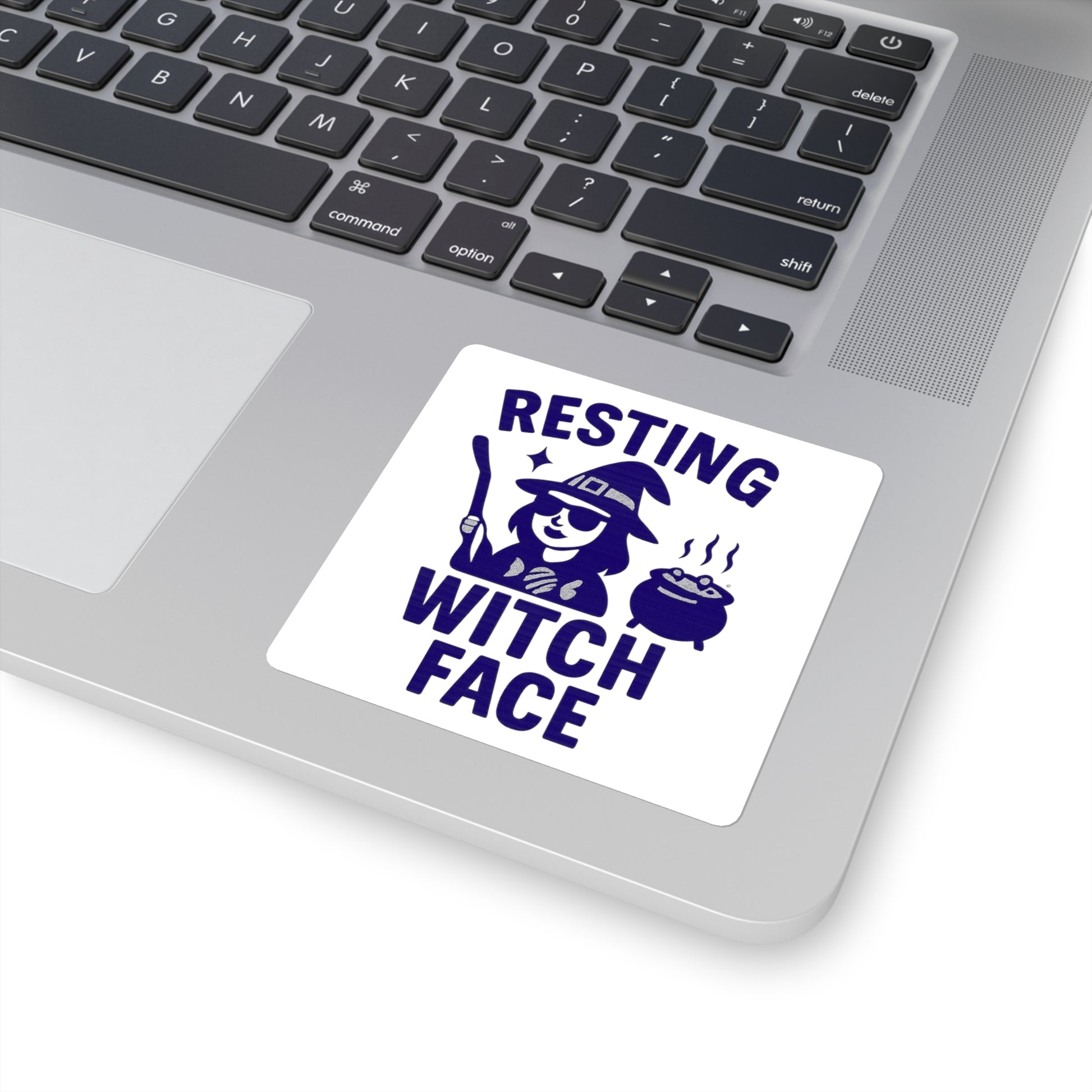 Resting Witch Face Square Stickers | Fun Halloween Decor