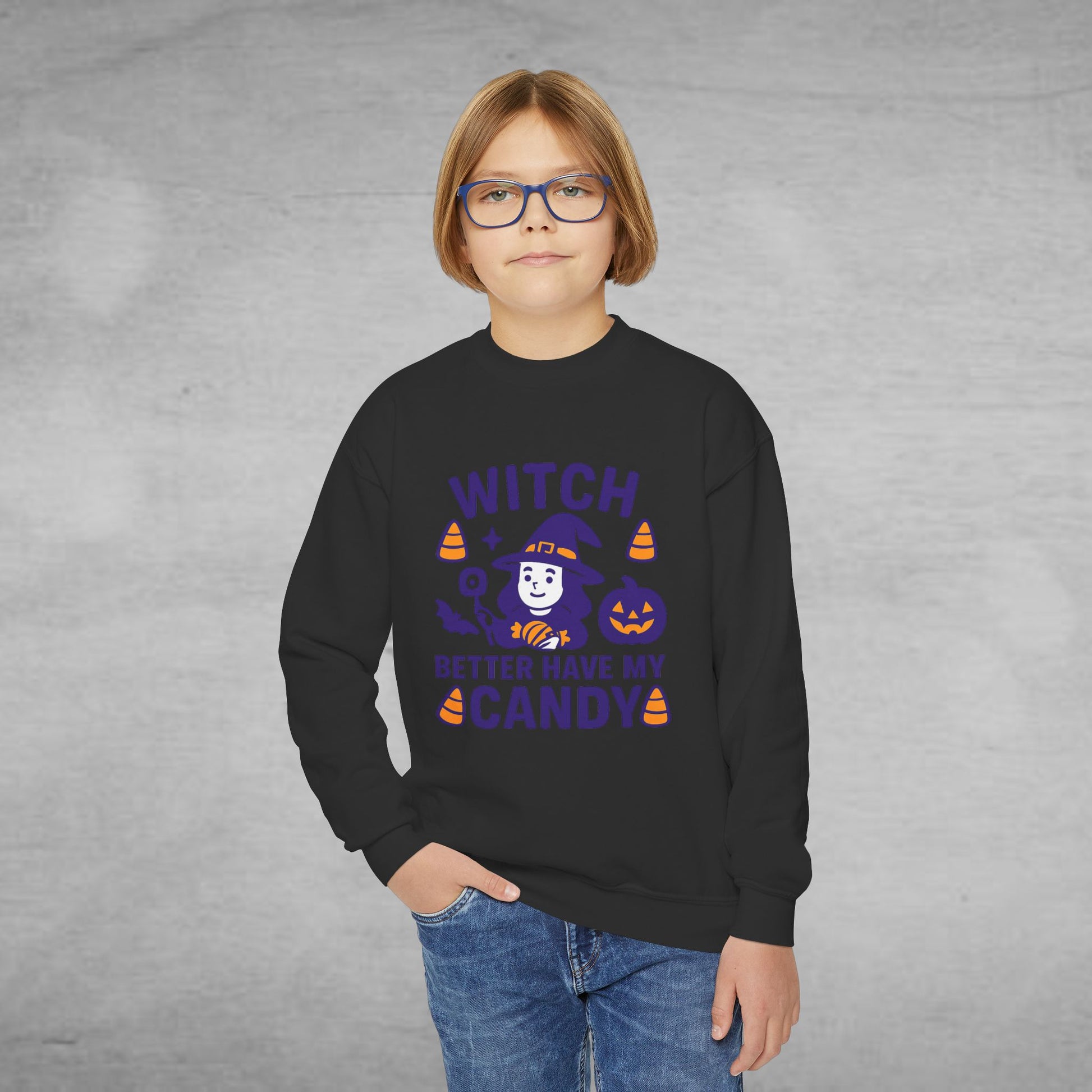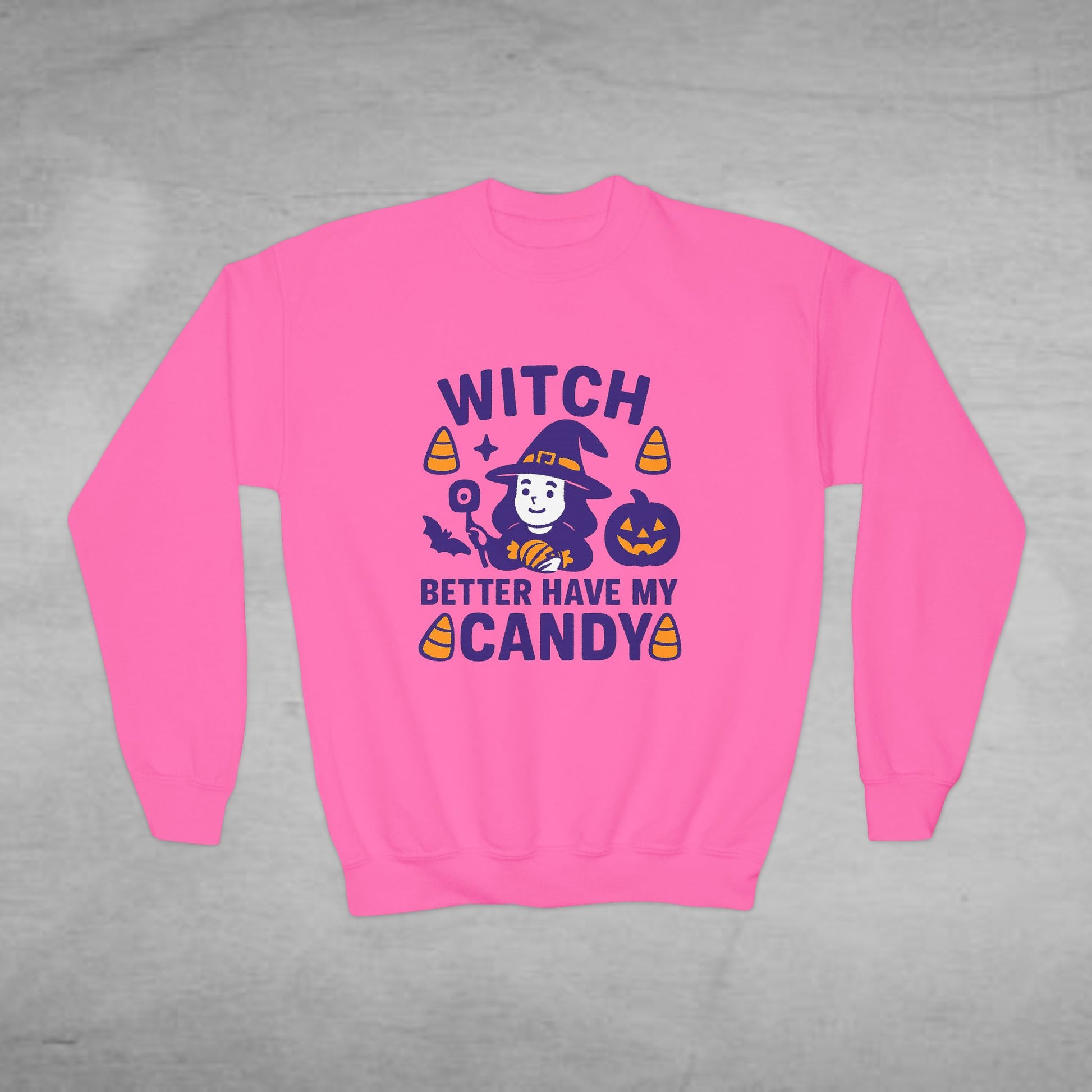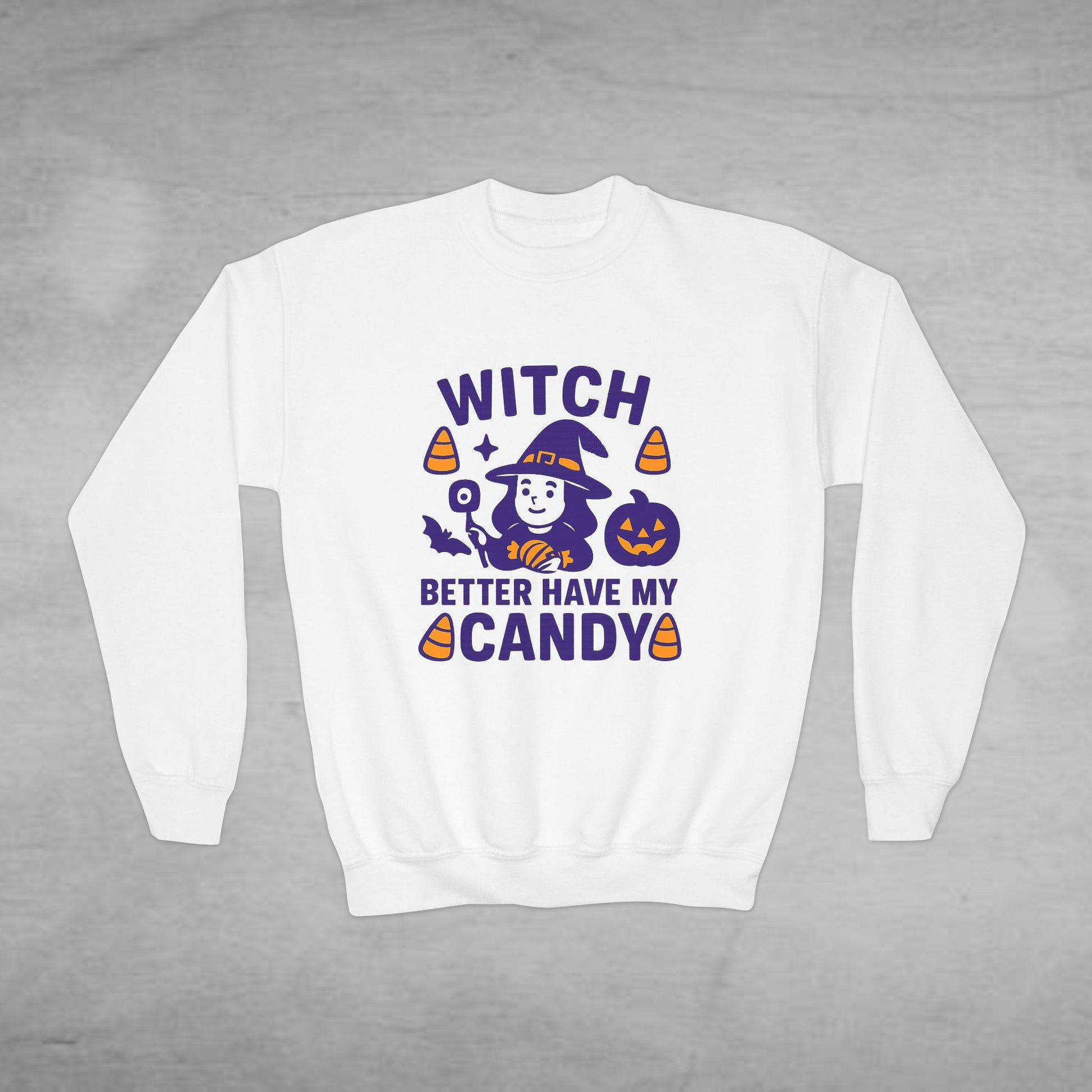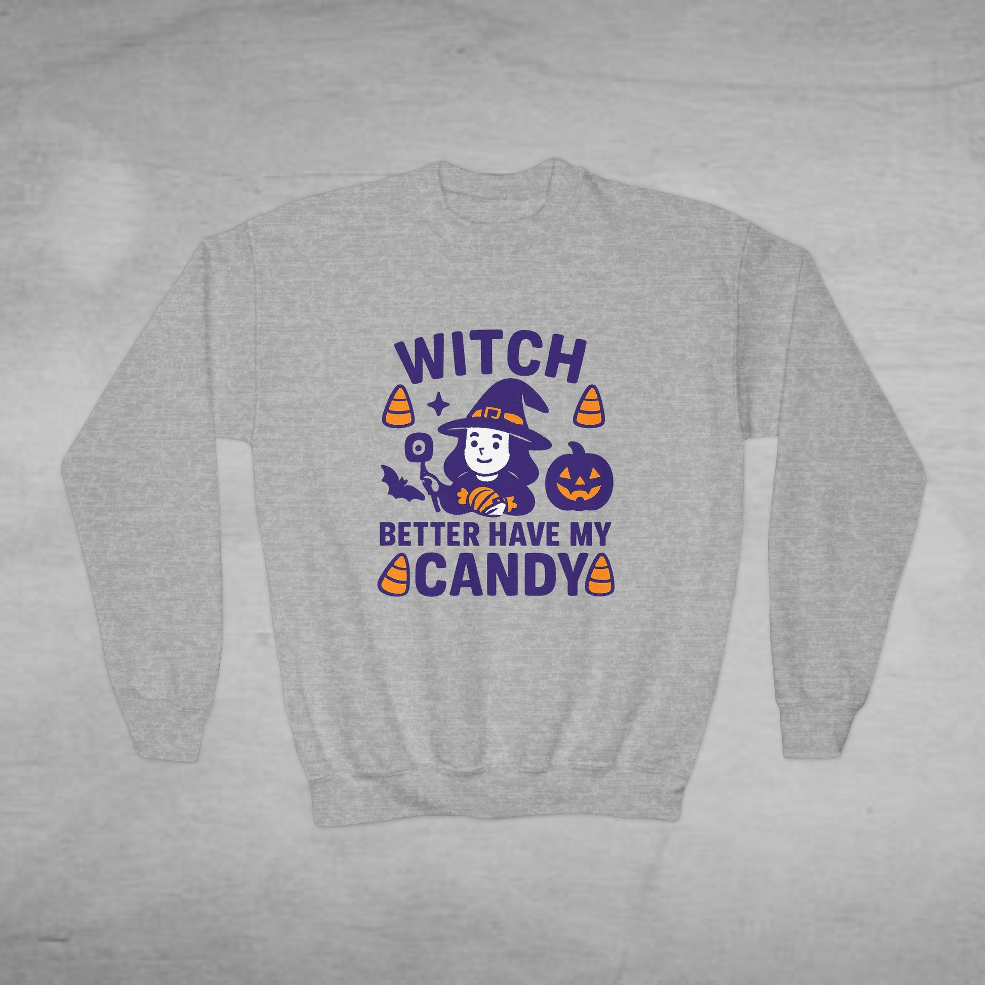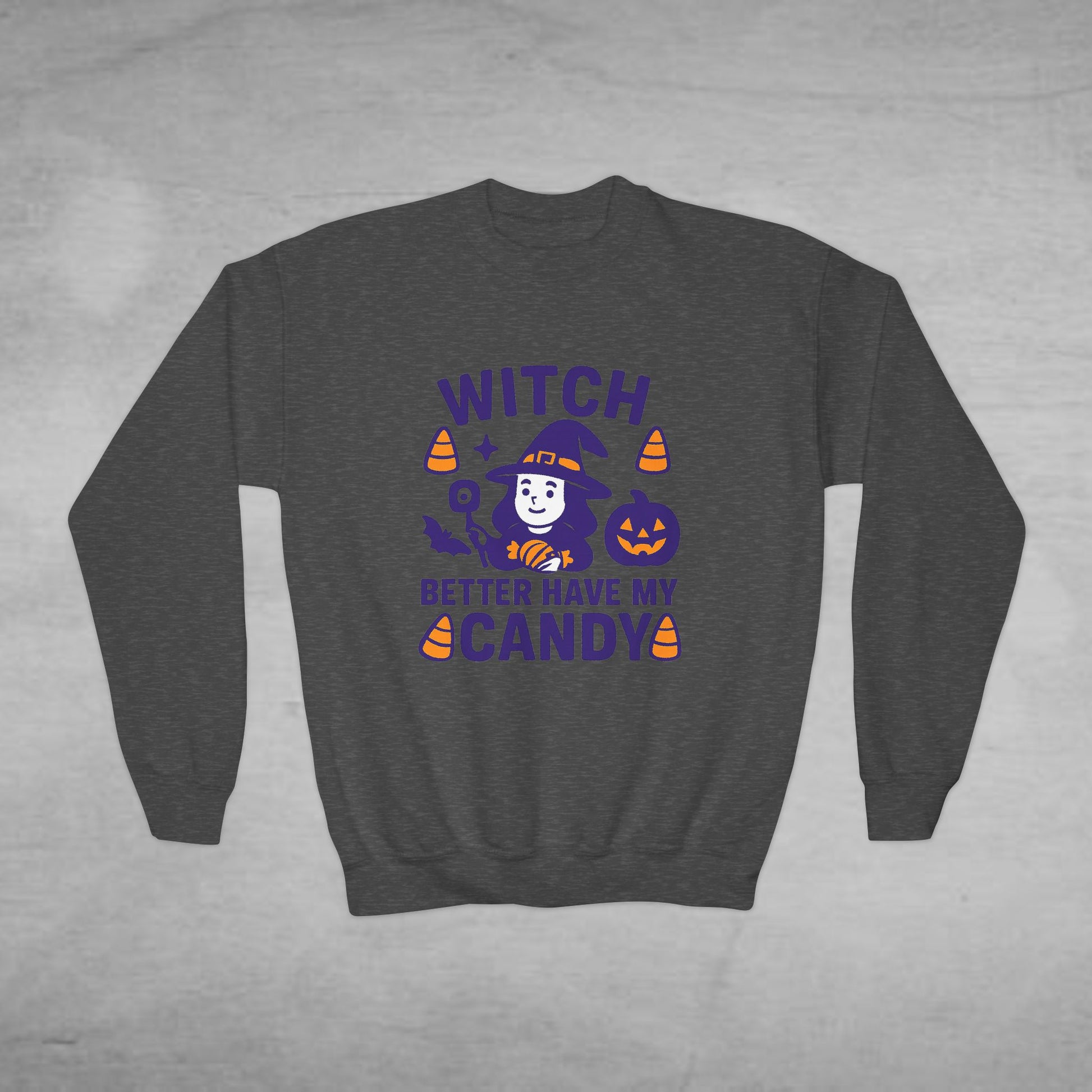 Youth Halloween Sweatshirt, Witch Better Have My Candy, Spooky Sweatshirt, Fall Fashion, Kids Halloween Apparel, Trick or Treat Gear